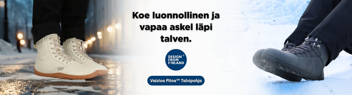 Valmistaudu talven haasteisiin paljasjalkakengillä, jotka tarjoavat jalkaterveyttä tukevan, mukavan ja vapaan liikkumisen jokaisella askeleella!