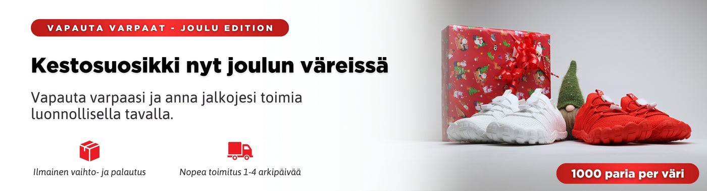 Vapauta Varpaat™ paljasjalkakenkiä käyttää kymmenet tuhannet suomalaiset ja ovat keränneet yli 1100 viiden tähden arvostelua. Monet kertovat käyttävänsä monipuolisia paljasjalkakenkiä työkenkinä, salikenkinä ja vapaa-ajan kenkinä.